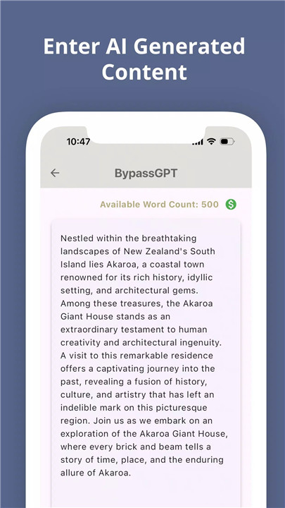 With its intuitive and simple design, BypassGPT makes converting AI content fast and easy. Users can quickly learn how to use the app.