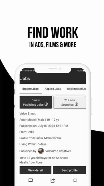 Search and apply for real-time job postings in ads, web series, films, events, and TV productions. Audition calls are updated regularly, giving users instant access to the latest industry opportunities.