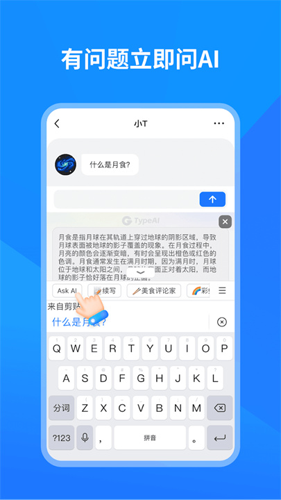 立即下载TypeAI,体验未来的智能输入法,让ChatGPT成为您生活和工作中的得力助手,开启更高效的文字表达之旅!