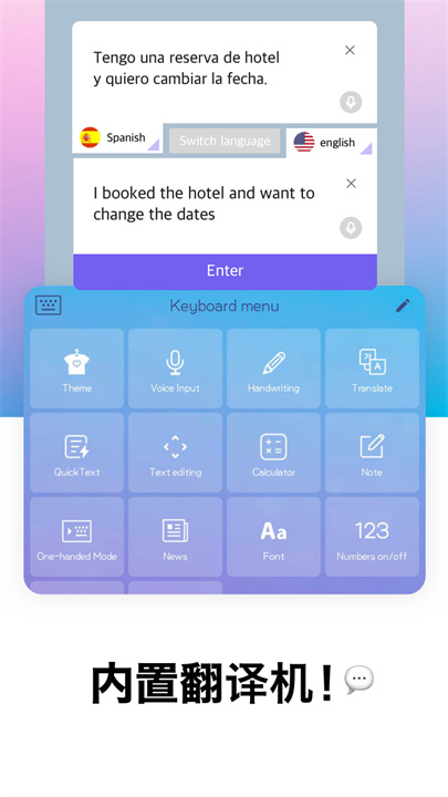 自定义键盘是一款功能强大的键盘应用,允许用户通过选择照片、GIF和多种主题来打造独特的输入体验。应用提供超过100,000种背景图片和GIF,用户可轻松搜索并应用。同时,支持多种语言和表情符号,还具备计算器功能和手势输入,让打字更流畅。