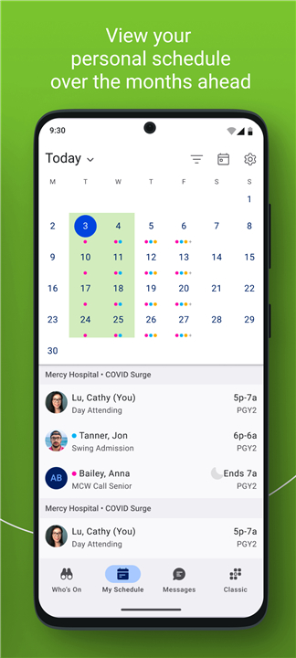 • Send messages directly to colleagues listed in your schedule via a HIPAA-compliant platform.