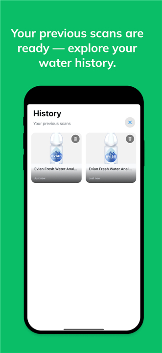 • Simple Photo Scan: Just snap a picture of any bottled water label or packaging with your phone's camera.