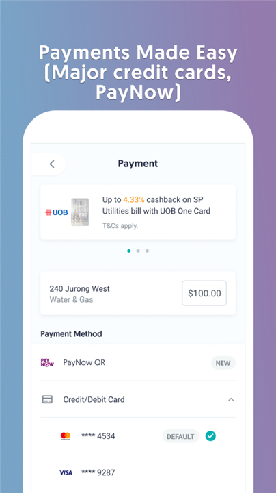 • Pay for electricity, water, and gas with just a tap.