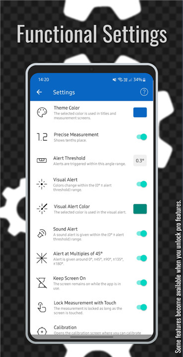 A: Yes! The app features visual notifications and audio alerts to keep you informed. You can customize the alert sensitivity and even set alerts for 45° multiples to help with precise measurements.