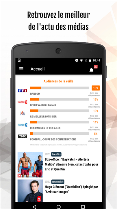 Le meilleur de l'actu TV & médias Download the latest version of Puremédias : infos TV & médias to enjoy new features and updates immediately!