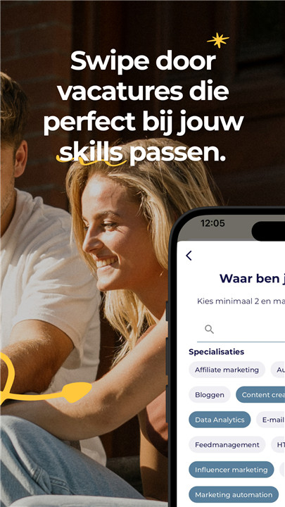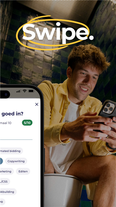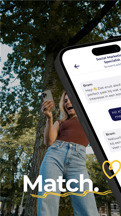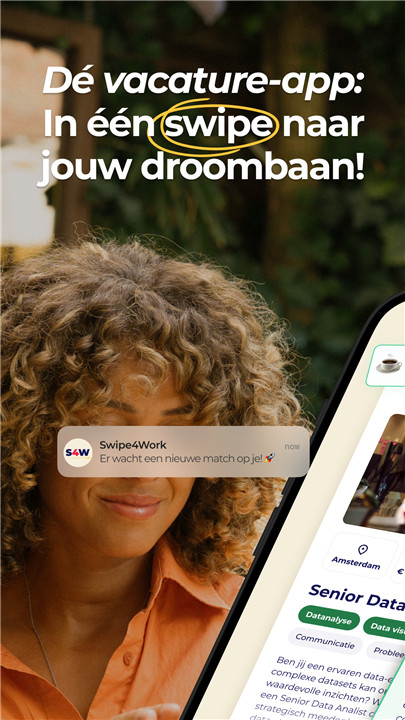 • Download the app, set up your profile, and begin swiping towards your next opportunity.