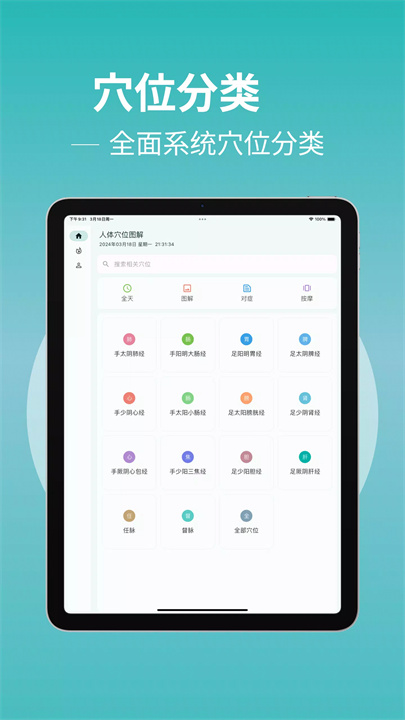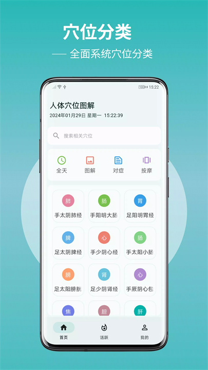 按照不同类型(如经络、症状等)对穴位进行分类,便于用户快速查找所需信息,无需繁琐搜索。