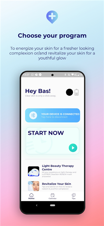 The LUSTRE® ClearSkin app puts you in control. Select the light setting that suits your goals: