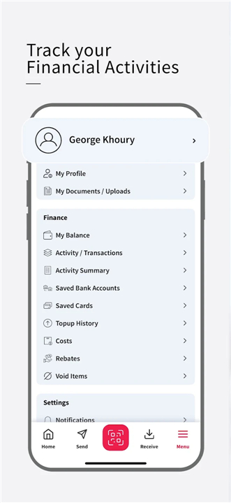 • Transaction Tracking: Monitor account activity, purchases, and transfers in real time.