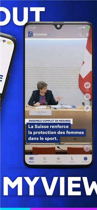 The app provides round-the-clock live news from Switzerland and worldwide. Users can choose the Standard view for essential global news or switch to My View, a personalized news feed tailored to individual interests.