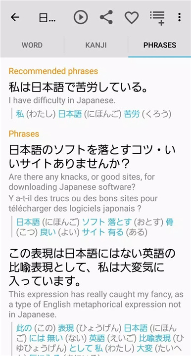 除了作为一款优质的词典之外,Takoboto app还是日语学习者的必备利器!内置的动词应用内示例以及动词变位工具,让你轻松掌握每一个动词的具体运用场景;此外,还支持将单词直接导入AnkiDroid,让你在学习日语的路上更加轻松便捷。