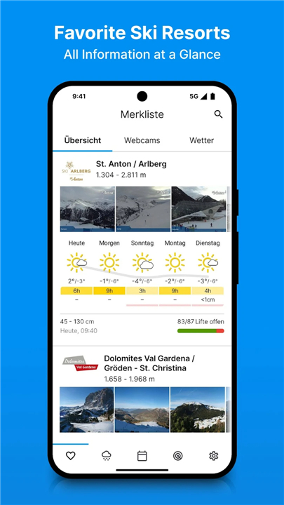 Explore ski resorts, snow depths & forecasts across Europe with Bergfex Ski App. Plan your trip, stay safe & book lodging. Download the latest version of bergfex: Ski, Snow & Weather to enjoy new features and updates immediately!