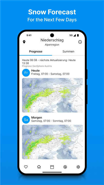 • Snow forecast updates every 6 hours for precise planning.