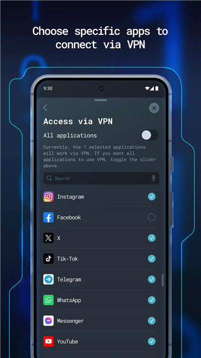 Smart Routing allows you to use both local and foreign resources simultaneously by routing foreign content through the VPN and keeping local resources direct, saving battery, data, and money while offering a seamless browsing experience.