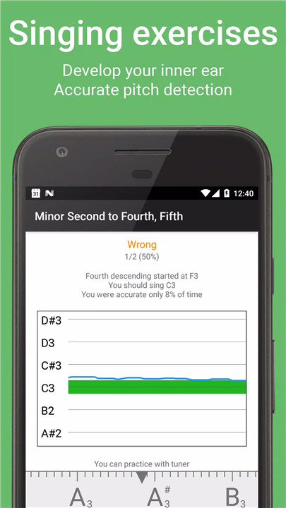 The app employs a functional approach to ear training, incorporating isolated sounds, singing exercises, and exercises within tonal contexts to maximize your results. This holistic approach helps you develop relative pitch recognition and move closer to achieving perfect pitch.