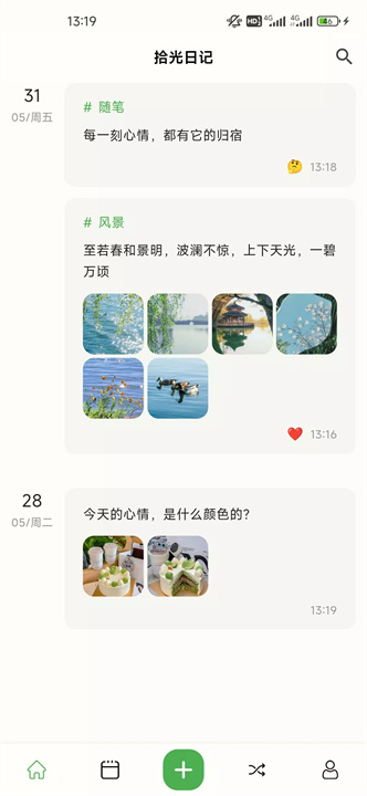 你不必期待每一天都轰轰烈烈,生活中的平凡也有着无穷的意义。拾光日记让你捕捉那些日常中的点滴,把它们变成属于自己的独特故事。