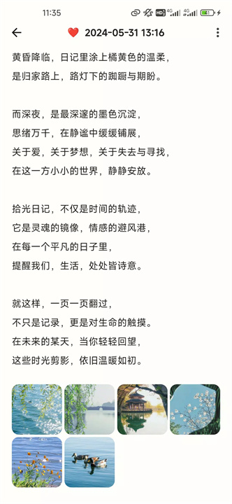 不仅可以写文字,还可以配上照片、视频,甚至语音(我们正在开发哦!)。这样你的日记就不再单调,回忆起来也更有味道,分分钟变成视觉和听觉的双重盛宴!