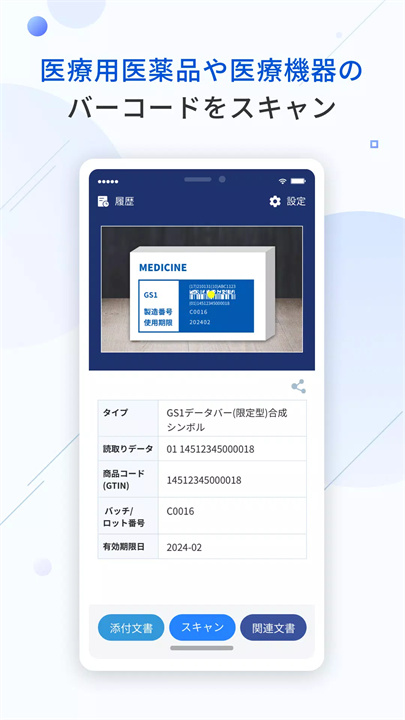 添文ナビ使用GS1条形码系统,确保扫描后的信息来自PMDA(药品和医疗器械代理)网站,具备权威性和准确性。