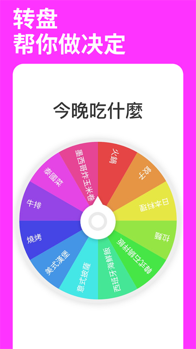 无论是家庭聚会、朋友聚餐,还是游戏抽奖、随机任务分配,小决定转盘都能为你带来便捷和乐趣。使用这款应用,让每一次选择都变得轻松愉快,再也不必纠结于“我该怎么做?”的烦恼。