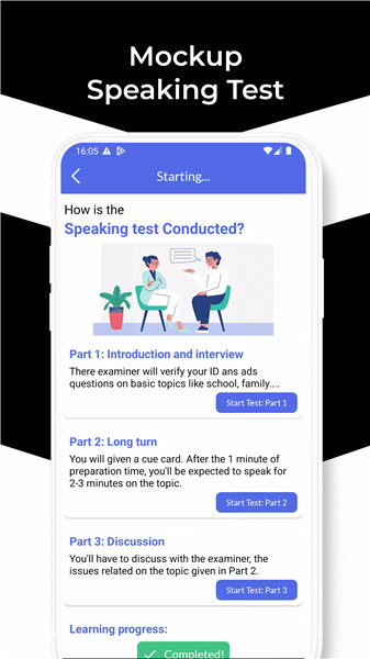 Simulate the actual IELTS Speaking Test experience with the mockup test feature.