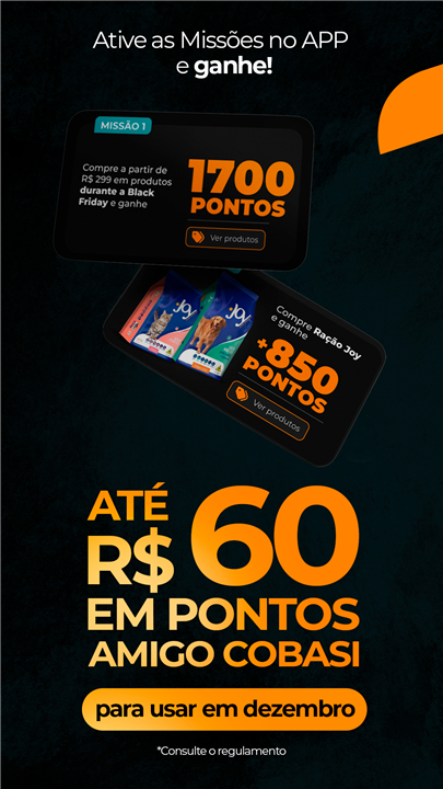 • Members of the Amigo Cobasi Program can check points, swap them for gifts, or claim discounts worth up to R$150.