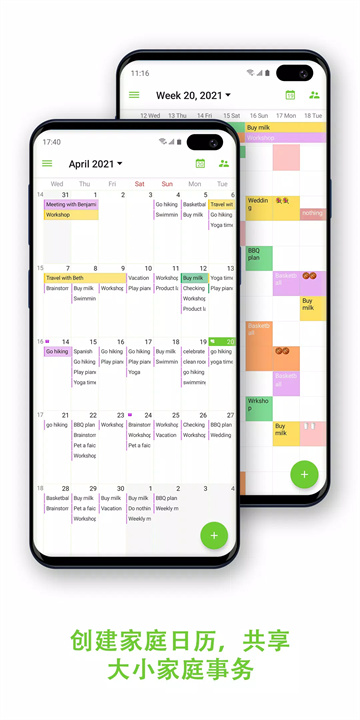 只需使用同一个共享密码登录,所有家庭成员的活动都会自动同步到日历上。