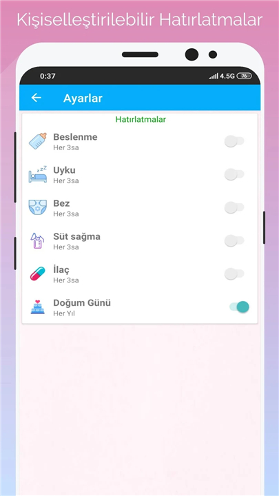 • Smart Reminders: Set custom alerts for feedings, sleep, medication, and other essential routines to keep you organized.