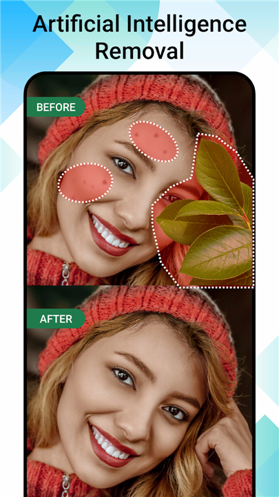 • Perfect your portraits by instantly removing skin blemishes and imperfections.