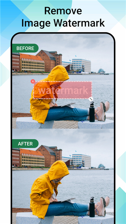 • Effortlessly erase watermarks, logos, and text with a single touch.