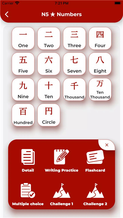 Practice Tests: Customize practice tests to assess your understanding and memory of Kanji. Test yourself on readings, meanings, kunyomi, onyomi, and associated words. Review incorrect answers to reinforce learning.