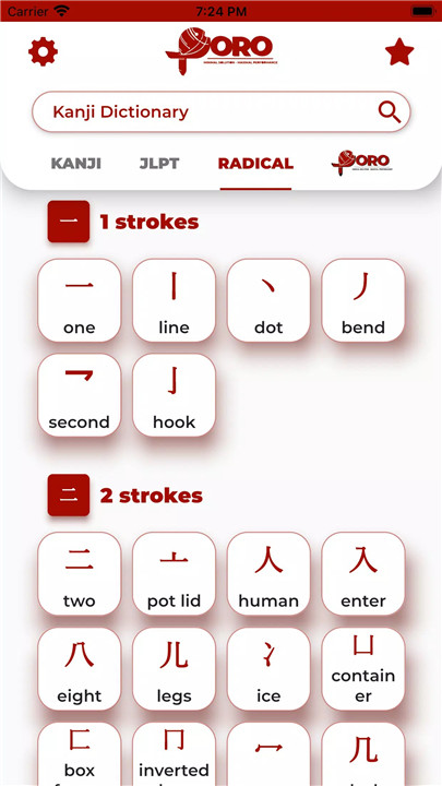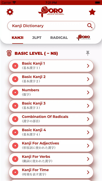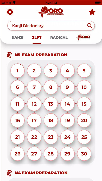 Extensive Kanji Database: Access a comprehensive database of 2500 Kanji of all levels, ranging from N5 to N1 of the JLPT (Japanese Language Proficiency Test). Explore 231 topics covering almost all Kanji levels to practice and reinforce your Kanji knowledge.