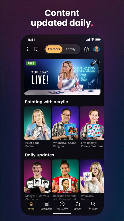 Choose from thousands of artist-led tutorials covering everything from painting pets and portraits to decorating cookies and shoes. There’s a project for every interest!
