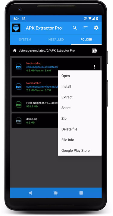 APK EXTRACTOR PRO by Magdalm is an Android app that allows users to extract and save APK files from apps installed on their device. This tool is useful for creating backups of apps, sharing APKs with others, or reinstalling apps without needing to re-download them. It offers a user-friendly interface and supports a range of features for managing and handling APK files.