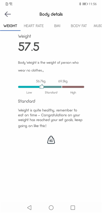 + Muscle Mass: Measures the weight of muscle in your body, which can help gauge fitness levels.