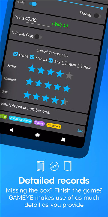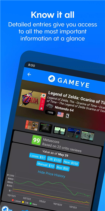 Elevate your game collecting experience with GAMEYE, a comprehensive solution that keeps your collection of games and amiibo organized and valued. With the release of GAMEYE 5.0, the app has been completely redesigned to leverage a new community-driven database. Get GAMEYE today and start transforming the way you manage your gaming collection!