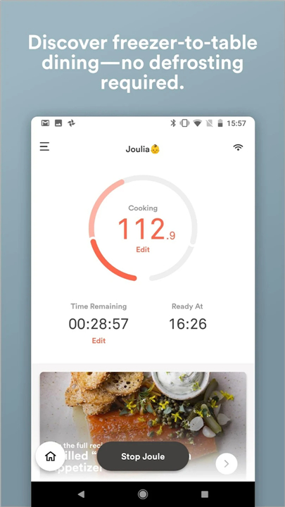 + Just choose your preferred level (rare, medium, well), tap Go, and let Joule handle the rest.
