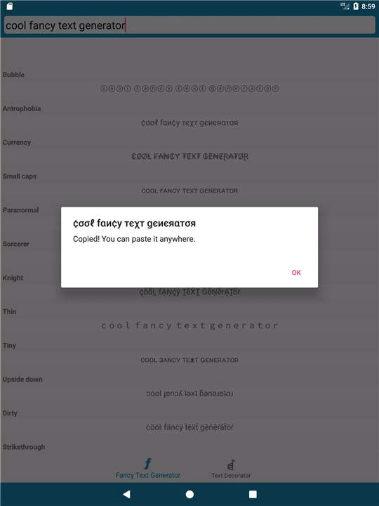 Simplify your text transformation process with the app’s user-friendly interface. Just click on your preferred style, and the converted text is instantly copied to your clipboard, ready to be pasted wherever you like.