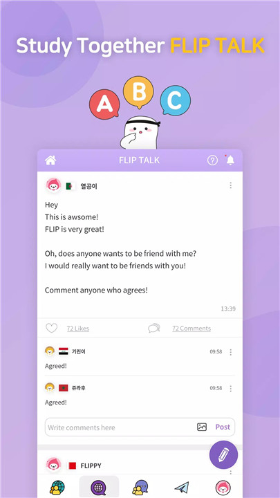 FLIP allows you to share your study achievements on social media platforms like Facebook and Instagram with a single button click. This feature helps you stay motivated and connect with friends.
