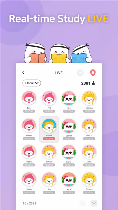 Curious about how many people are studying at the moment? Check out the LIVE feature on FLIP. You can see who’s studying in real time and get motivated by their activity.