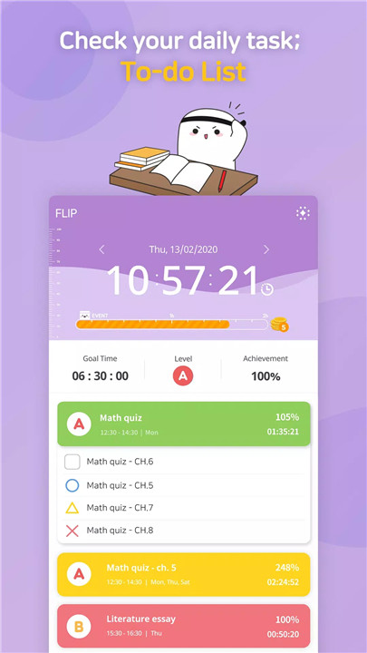 Stay organized with the To-Do List feature. Manage your daily tasks, homework, and study sessions efficiently. FLIP helps you prioritize and accomplish your goals.