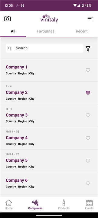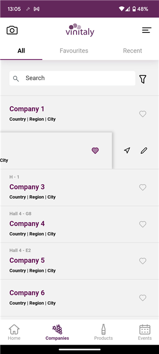 • The app functions as a directory of all exhibitors present physically at Vinitaly, making it easier to identify and connect with them during your visit.