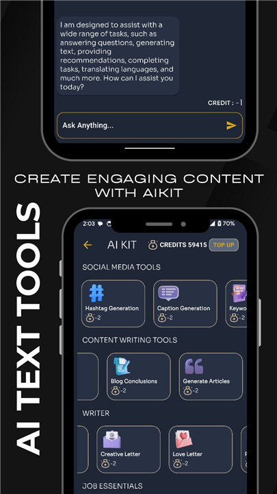 Create stunning AI Content, avatars, and text effortlessly with AI Kit Download the latest version of Ai Kit (Ai Chat & Avatars ) to enjoy new features and updates immediately!