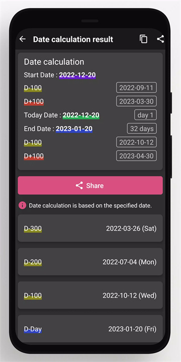 一键计算100天、200天、1年、2年等多个D-Day,方便记录和回顾重要的里程碑。
