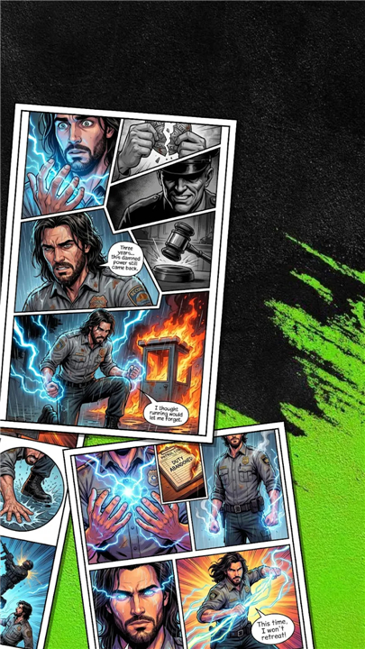 • Our advanced AI engine interprets your written descriptions to craft high-quality, sequential comic pages.