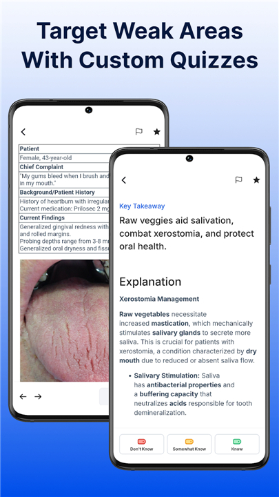 A: Whether you’re in the early stages of your NBDHE journey or you’re in the final weeks before the exam, the app adapts to your current knowledge. When you first log in, you’ll take a brief diagnostic quiz that gauges your strengths and areas for improvement. From there, Dental Hygiene Mastery tailors question sets and quizzes to your performance, so you’ll never waste time on material you’ve already mastered.