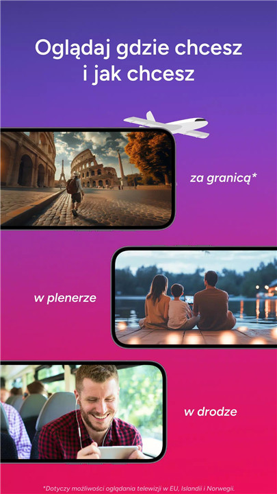 Start with a free account and get access to over 30 TV channels including TVP1, TVP2, Polonia 1, and TV Puls—no subscription required. Want more? Choose from over 100 additional channels with flexible premium packages that include sports, movies, documentaries, and international content.