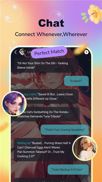 • Engage with personalities ranging from empathetic listeners to quick-witted conversationalists, adventurous storytellers, and even fantastical characters.