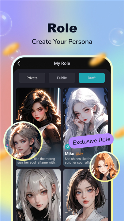• Whether you’re seeking comfort, a spark of humor, or a journey into imaginative worlds, SoulChat offers companionship that feels truly personal — available whenever you need it.