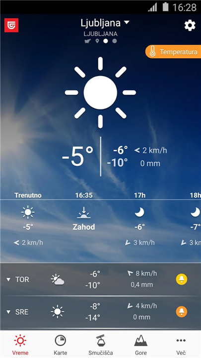 • Whether you need current conditions, short-term forecasts, or long-term predictions, Triglav Weather delivers timely updates for any specific location as well as nationwide coverage.