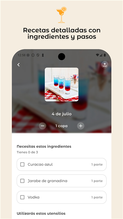 • Instantly receive a list of creative and delicious cocktail recipes